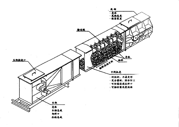 FU型鏈式輸送機,是引進國外先進技術,并進行了獨創性的改進設計后制造出來的一種用于水平(或傾斜≤15°)輸送粉狀、粒狀物料的機械新產品,其使用性能優于螺旋輸送機,埋刮板輸送機和其它輸送設備,廣泛用于建材、建筑、化工、礦山、機械、冶煉、糧飼加工等行業,是一種理想的新型輸送設備。