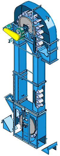 NE系列板鏈式斗式提升機由運行部件、驅動裝置、上部裝置、中部機殼、下部裝置組成。